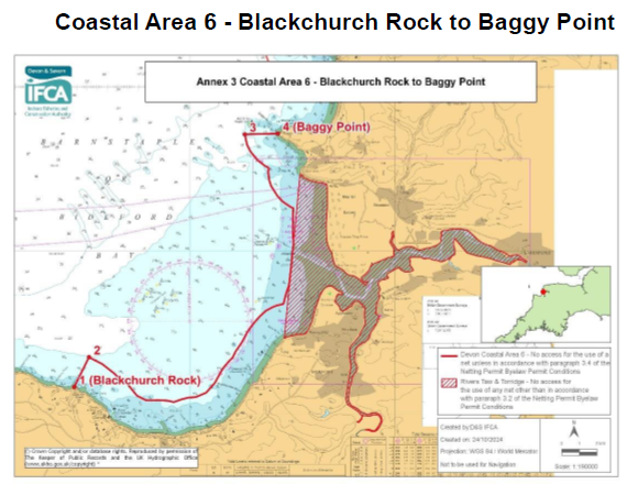 The red hatch area in the chart above is explained in Annex 2 Rivers Taw and Torridge. If you intend to use any net in Coastal Areas (Annex 3) other restrictions apply, which are detailed in the Netting Permit Conditions.