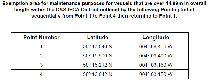 It is envisaged that requests for maintenance exemptions would be, for example, made by an owner of a large beam trawler over 14.99 metres in overall length that needs to have its hydraulics evaluated under load with fishing gear deployed in the District.
