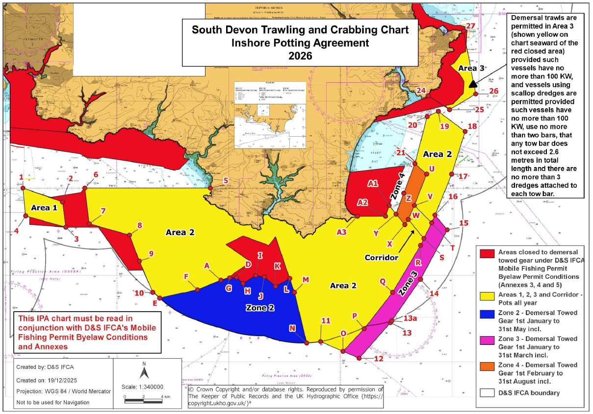 SOUTH DEVON INSHORE POTTING AGREEMENT – TRAWLING AND CRABBING CHART 2026